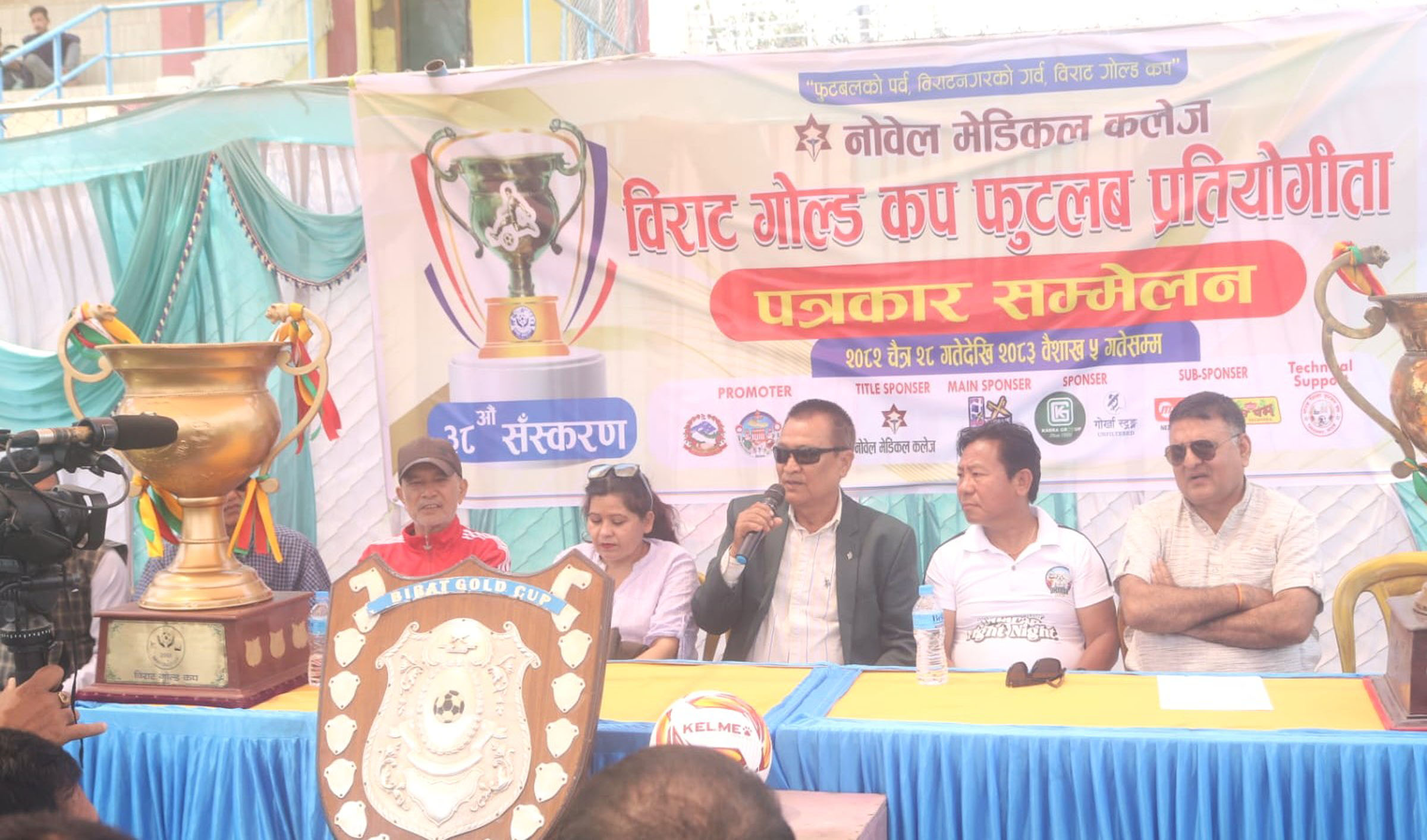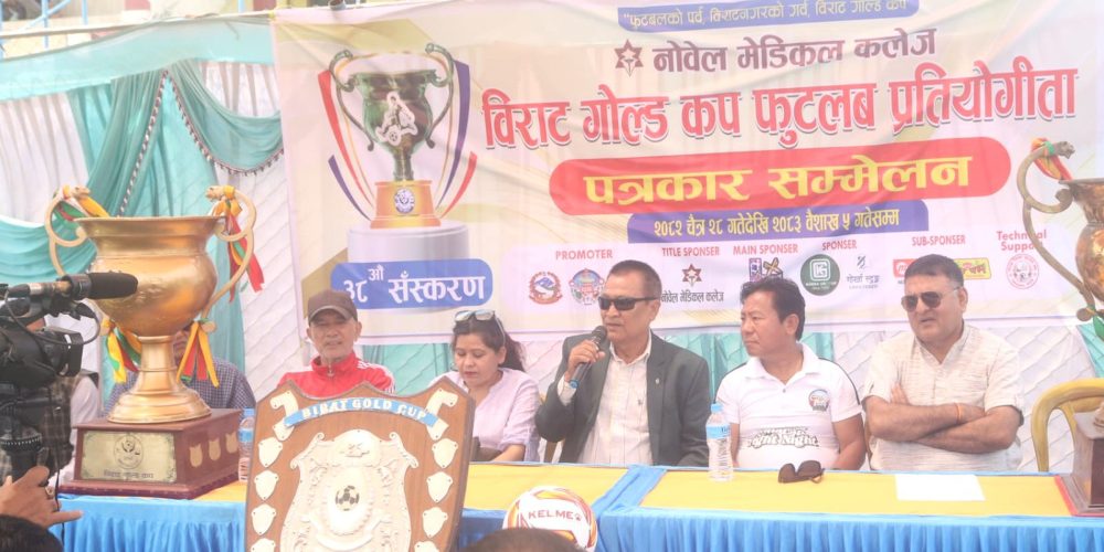 विराटनगर, २५ चैत ः नोवेल मेडिकल कलेज विराट गोल्ड कप फूटवल–२०८२ प्रतियोगितामा यही चैत २८ गतेदेखि २०८३ वैशाख ५ गतेसम्म विराटनगरमा आयोजना हुने भएको छ। विराट गोल्ड कप फुटवल ट्रष्टद्वारा आज विराटनगरमा आयोजित पत्रकार सम्मेलनमा स्थानीय शहीद मैदानमा डे नाइटमा हुने ३८ औँ गोल्ड कप प्रतियोग