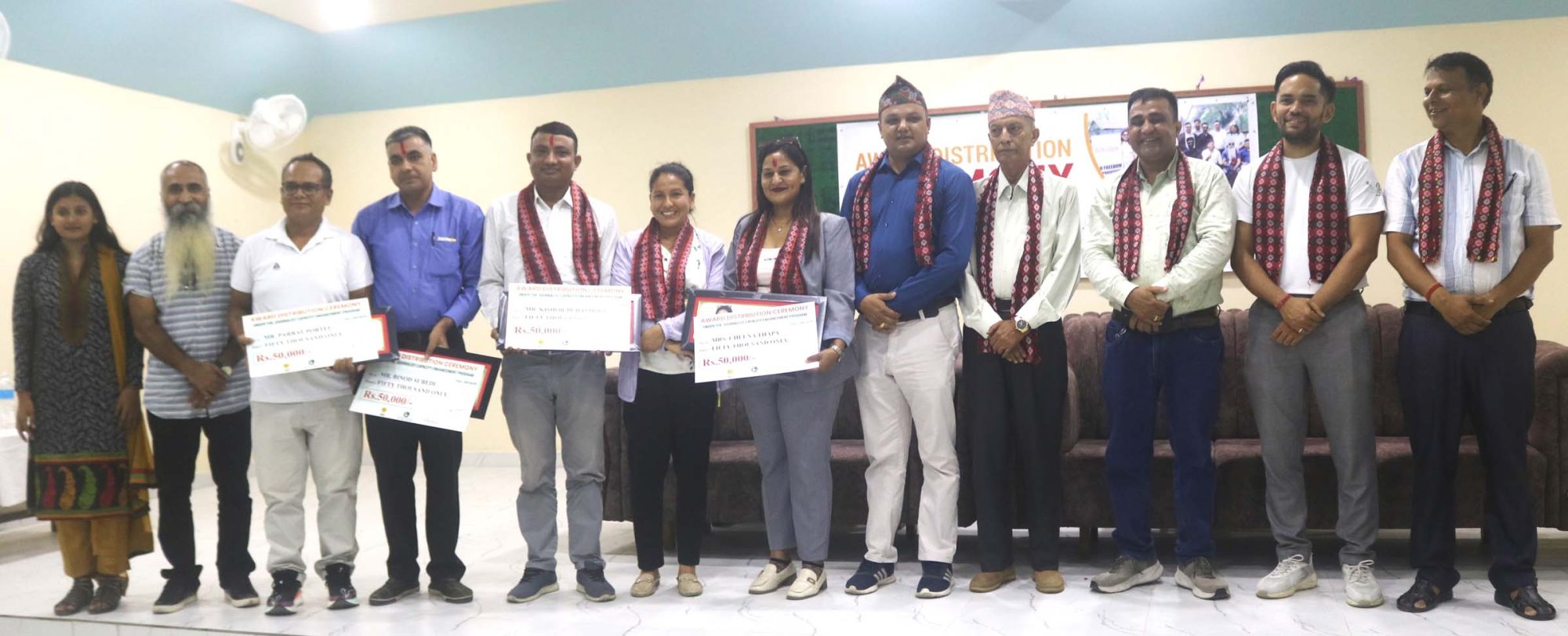 विराटनगर ९ असोज । विकल्प एन अल्टरनेटिभले मोरङका ४ जना पत्रकारलाई लेखनबृत्ति (फेलोसिप) वितरण गरेको छ । विराटनगरमा आज एक कार्यक्रमको आयोजना गरि विकल्पले इन्टरनेसनल अलर्टसँग सहकार्यमा ४ जना पत्रकारलाई ५०–५० हजारको दरले फेलोसिप वितरण गरेको हो ।