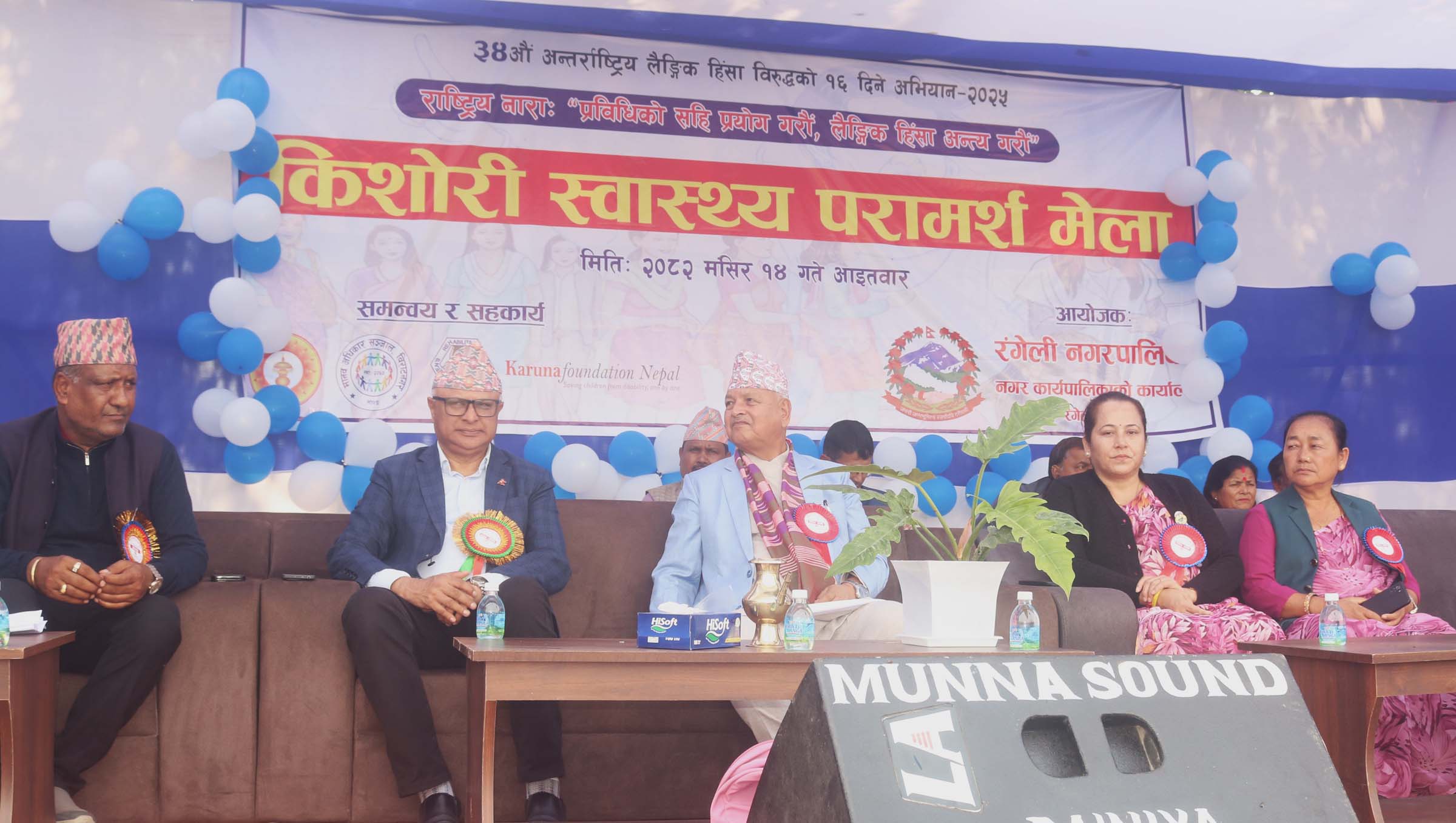 रंगेली नगरपालिकाद्वारा आज ३४ औँ अन्तर्राष्ट्रिय लैङ्गिक हिंसा विरुद्ध १६ दिने अभियान –२०२५ अन्र्तगत एक दिने किशोरी स्वास्थ्य परामर्श मेलाको उद्घाटन गर्दै उहाँले आगामी दिनमा प्रदेशमा सबै प्रकारको महिला हिंसा नियन्त्रणका लागि प्रदेश सभाबाट आवश्यक कानुन निर्माण गर्ने जानकारी दिनुभयो ।